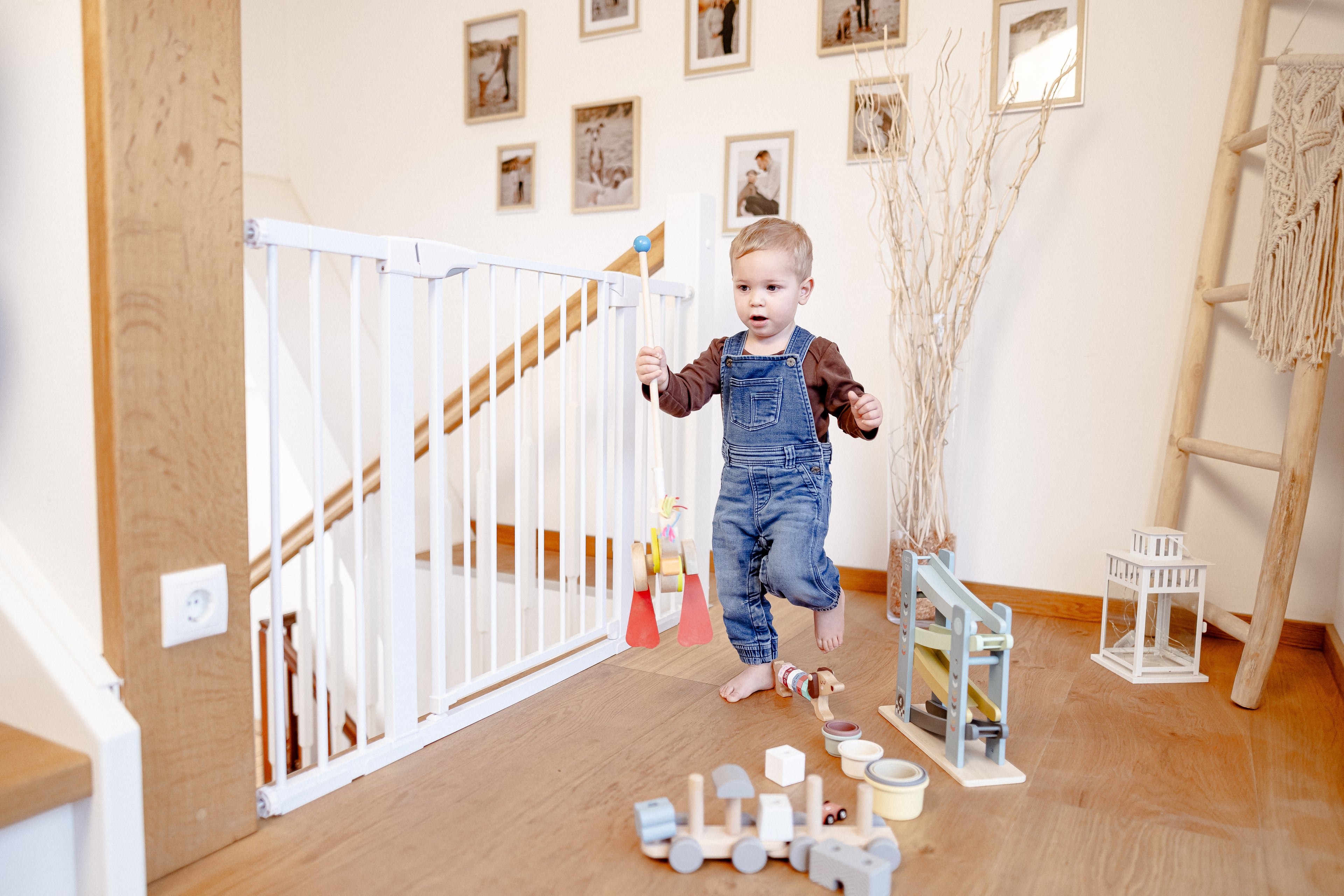 Das GS-zertifizierte childoo Treppenschutzgitter schützt zuverlässig vor gefährlichen Stürzen – für Kinder genauso wie für Hunde. Stabil, bohrfrei montierbar und kinderleicht zu bedienen.